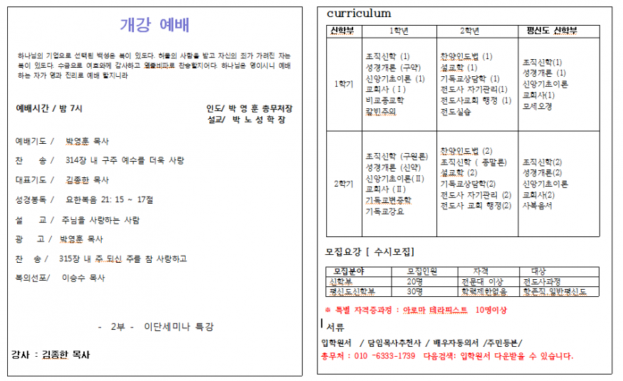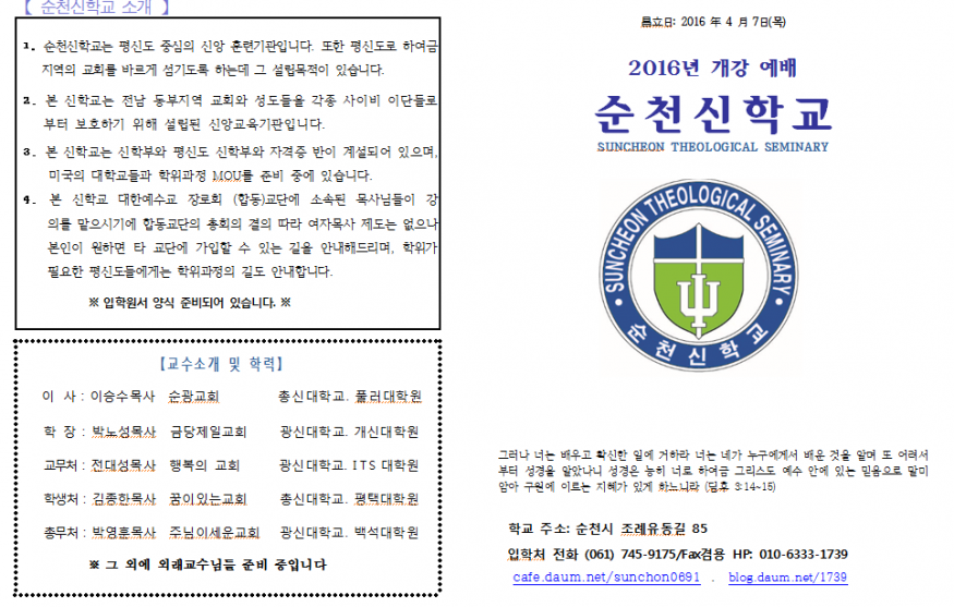 개강 예배순서지 페이지 정보 작성자순천신학교 댓글 0건 조회 1,232회 작성일 18-08-17 17:11 본문 . 목록 답변 이전글순천신학교 운영위원 모임 18.08.17 다음글모집요강 18.08.13 댓글목록 댓글목록 등록된 댓글이 없습니다.